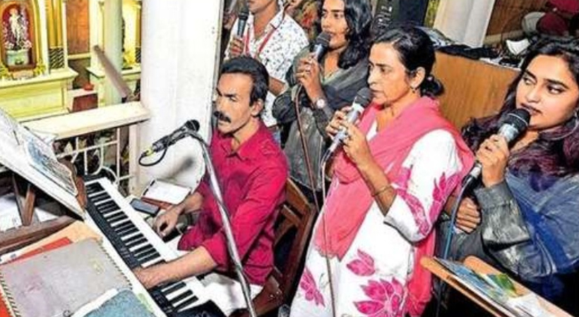 അർത്തുങ്കൽ സെന്റ് ആൻഡ്രൂസ് പള്ളിയിൽ ജോസുകുഞ്ഞും ഭാര്യ മേരി ഗ്രേയ്സും മക്കളായ അഞ്ജുവും മഞ്ജുവും ചേർന്ന് കുർബാനയ്ക്ക് പാടുന്നു.