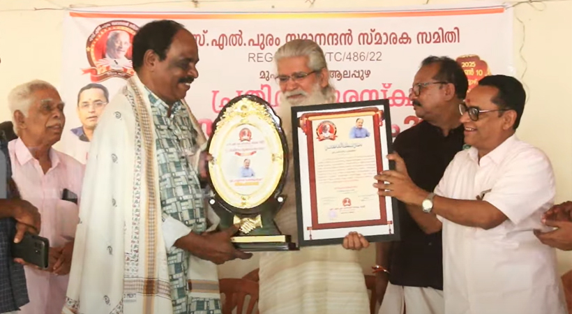 എസ്.എൽ പുരം സദാനന്ദൻ സ്മാരക സമിതിയുടെ ആഭിമുഖ്യത്തിൽ പ്രതിഭാ പുരസ്ക്കാര സമർപ്പണം – 2025 സംഘടിപ്പിച്ചു.