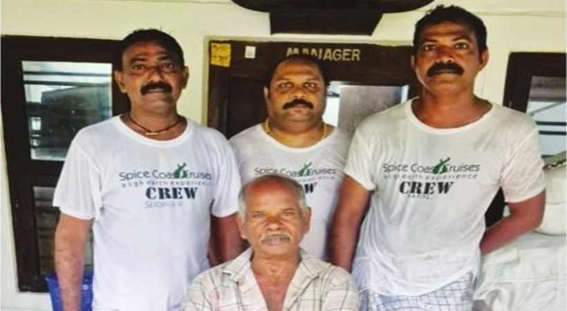 രക്ഷിച്ച പുരവഞ്ചി ജീവനക്കാർക്കൊപ്പം മാപ്പിളശേരി പ്രസന്നൻ