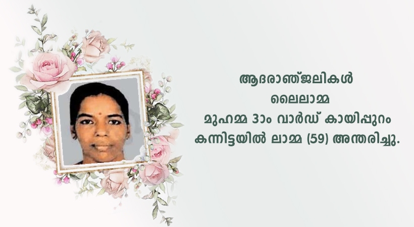 മുഹമ്മ: പഞ്ചായത്ത് 3-ാം വാർഡ് കായിപ്പുറം കന്നിട്ടയിൽ ലൈലാമ്മ (59) അന്തരിച്ചു.