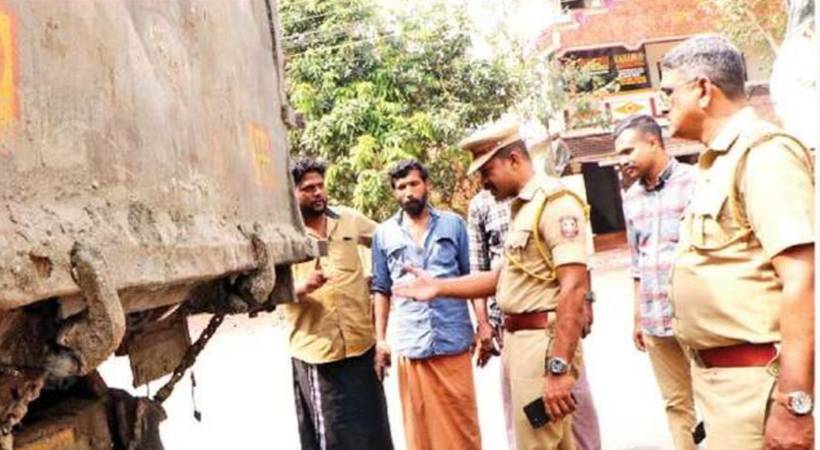 ദേശീയപാത നിർമാണത്തിനായി കായൽമണൽ കൊണ്ടുപോകുന്ന ലോറി മോട്ടോർവാഹനവകുപ്പ് പരിശോധിക്കുന്നു