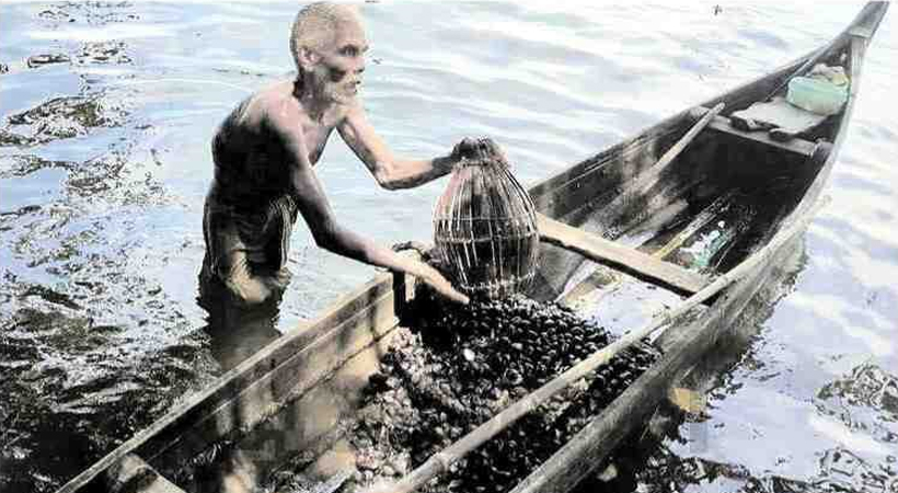 കായലിൽ നിന്ന് കക്ക വാരുന്ന ചെല്ലപ്പൻ