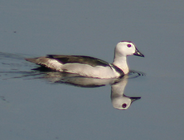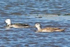 Small examples are the smallest waterfowl on earth, at as little as 160 g (5.5 oz) and 26 cm (10.5 in). White predominates in this bird’s plumage. Bill short, deep at base, and goose-like.