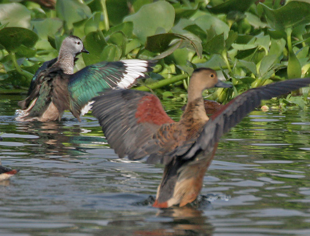 The Cotton Pygmy Goose or the Cotton Teal,Nettapus coromandelianus is a small perching duck which breeds in India, Pakistan, southeast Asia and south to northern Australia. It is locally known as Girri, Girria, Girja (Hindi); Gurgura (Etawah); Bali hans (Bengal); Bhullia hans (Bangladesh); Dandana (Orissa); Ade, Atla (Ratnagiri); Naher, Keeke, Chuwa (Nowgong, Assam); Baher, Kararhi (Sind, Pakistan).